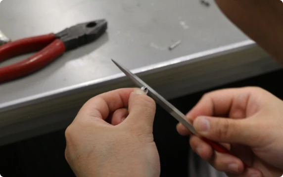 軽量化のため、加工可能な最小構造の針をステンレスで製作。ガス噴射機構に合わせて先端部を手加工で削り出し、トライ&エラーにより形状を決定した。
