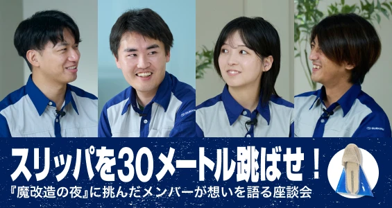 仕事は違っても「笑顔をつくる」という想いでつながる「SUBARUびと」。今回は、エンジニアたちが日用品や家電製品を「魔改造」してモンスターマシンに仕立て、そのアイデアやテクニックを競技形式で競うNHKの人気番組『魔改造の夜』に挑んだ、山川さん、大木さん、上田さん、荒川さんの4人が激動の1カ月半を振り返ります。プロジェクトの詳細は、『魔改造の夜』特設サイトをご覧ください。