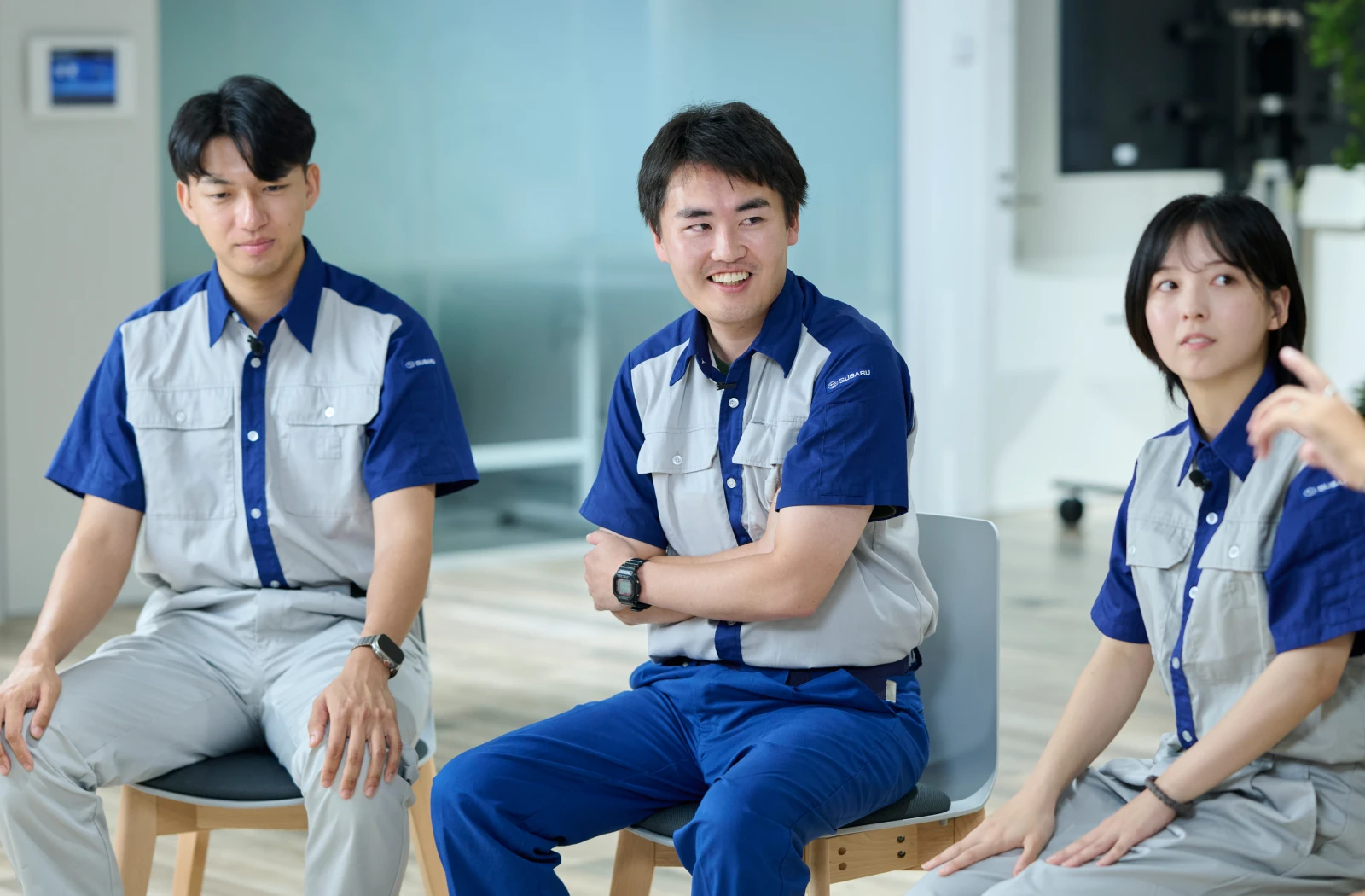 - 私も、皆さんが言う通り、「人を中心としたモノづくり」だと思いましたが、それに加えて、個人の役割にとらわれず、全員でモノづくりができることも、SUBARUらしさだと感じました。全員がモノづくりに向き合い、真剣な議論を交わした先に良い商品が完成し、お客様や社員の笑顔をつくることができると、改めて実感することができました。