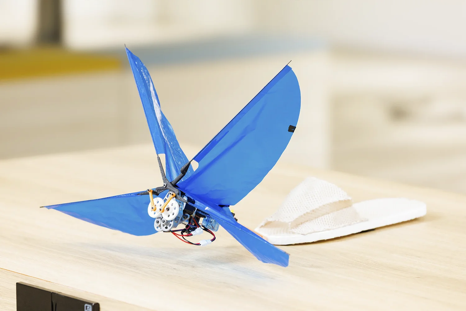 完成した羽ばたき式スリッパ「カサカサX」