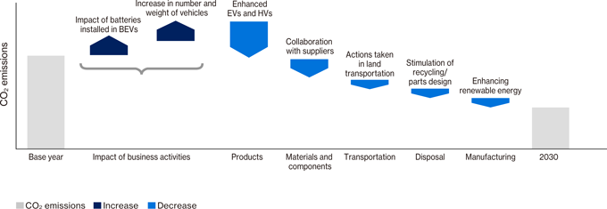 For example, we are working to formulate measures for the transition to electrification and responding to water-related disasters, taking into consideration scenarios such as one in which the percentage of EVs sold in the market increases significantly, as well as one in which the market penetration of EVs increases modestly, and one in which measures to address climate change do not progress and natural disasters become more severe.