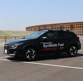 SUBARU provided vehicles for officials at the Expo 2025 Osaka, Kansai, Japan, using synthetic fuel produced by ENEOS. Synthetic fuels are clean liquid fuels made from hydrogen derived from renewable energy sources and CO2, and are expected to help reduce CO2 emissions from internal combustion engines while utilizing existing infrastructure.