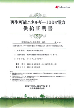 By further expanding the use of renewable electricity through this initiative, it is expected that approximately 10% of the electricity used at the Yajima Plant and 14% at the Tokyo Office will be switched to carbon neutral electricity.