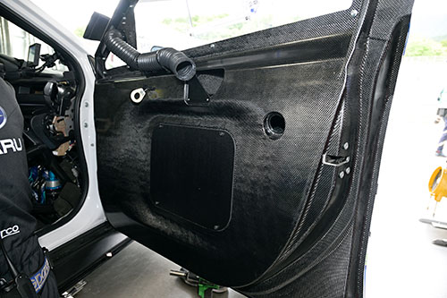In collaboration with SUBARU’s Team SDA* Engineering, the team leading our entry in the Super Taikyu Series of races, the SUBARU HighPerformanceX Future Concept, our vehicle for the competition, utilizes a carbon fiber rear wing, roof, door, and other items made of recycled carbon fiber from composite waste generated in aircraft parts manufacturing. This has reduced not only the vehicle’s weight but also its environmental impact.