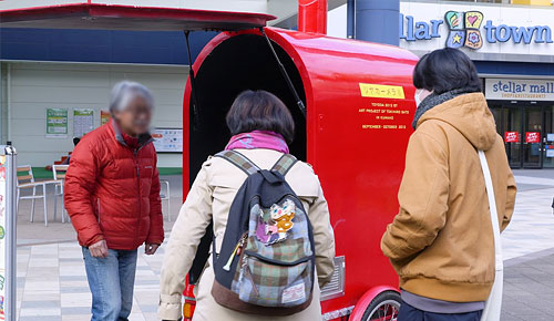The Northern Heart Kitamachi Development Association*, of which Subaru Kohsan Co., Ltd. serves as the secretariat, sponsored an art event organized by the Arts Saitama Kitamachi Festival Executive Committee. Contemporary art works were exhibited at various locations in Stellar Town, a large shopping mall, under the theme of “Vending Machines, but Sometimes a Bicycle.” The event was well received, with around 1,500 visitors of all ages.