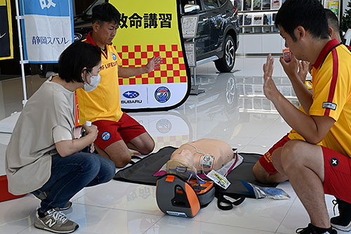 As part of our initiatives for human life, SUBARU has entered into an official partnership with Japan Lifesaving Association to support its goal of “Free from Drowning.” In FYE March 2021 we started providing vehicles called “SUBARU Lifesaving Cars” for monitoring activities and transport of emergency rescue equipment at beaches in Kanagawa, Chiba, and Shizuoka prefectures, and then in FYE March 2025 we expanded area of activity to include the coasts of 30 prefectures across Japan. Here, 27 SUBARU dealerships provided 36 vehicles in contribution to beach patrols and rescue and relief efforts during the summer. Of these, 21 SUBARU dealerships held Basic Life Support (BLS: first aid for cardiac arrest or respiratory arrest) training sessions led by lifeguards, and five dealerships held hands-on lifeguard activity sessions to promote actions that protect lives. In conjunction with its sponsorship of the 50th All Japan Life Saving Championships, a total of 158 SUBARU Group employees and their family members conducted a cleanup activity at the tournament venue, Katase Nishihama Beach. In this way, we contributed to actions that protect lives near the sea.