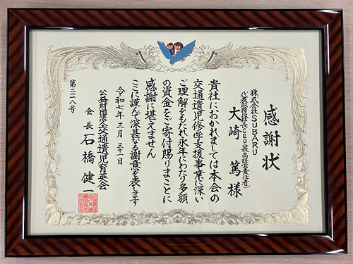 In FYE March 2026, we received a letter of appreciation from the Scholarship Foundation for Traffic Accident Orphans, one of our donation recipients, for our long-standing donations.