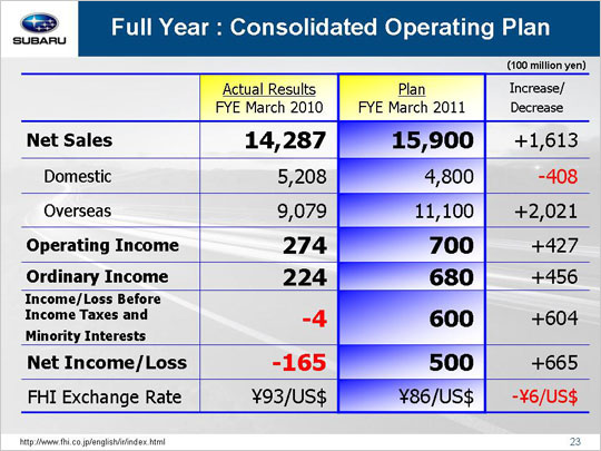 Net income is expected to total 50.0 billion yen with projected taxes for our subsidiaries amounting to approximately 10.0 billion yen. Net income will increase 66.5 billion yen over the previous fiscal year, bringing us back to profitability for the first time in two years.