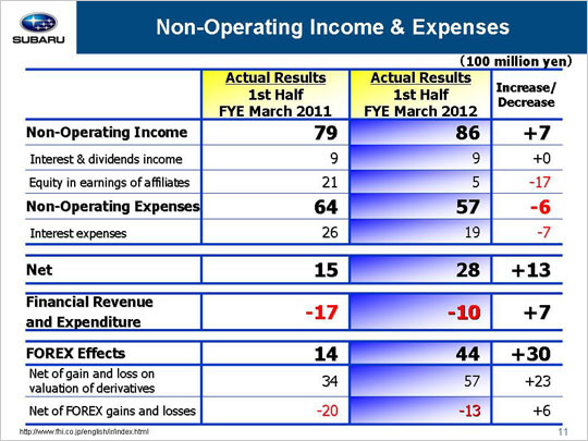Net gains on valuation of derivatives were up 2.3 billion yen year on year, bringing the net gain total from 3.4 billion yen to 5.7 billion yen.