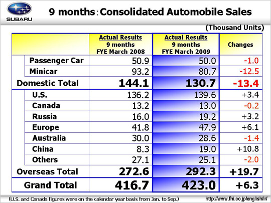 The total number of passenger cars sold in the domestic market decreased by 1 thousand units, as Legacy decreased by 7.6 thousand units and Impreza by 7.9 thousand units, compensated by increased sales of Forester by 5 thousand units due to the effect of a full model change, 8.8 thousand units Exiga, a new model, and 900 units Dex via OEM supply from Daihatsu Motor Co, Ltd.