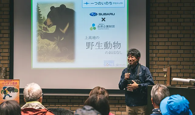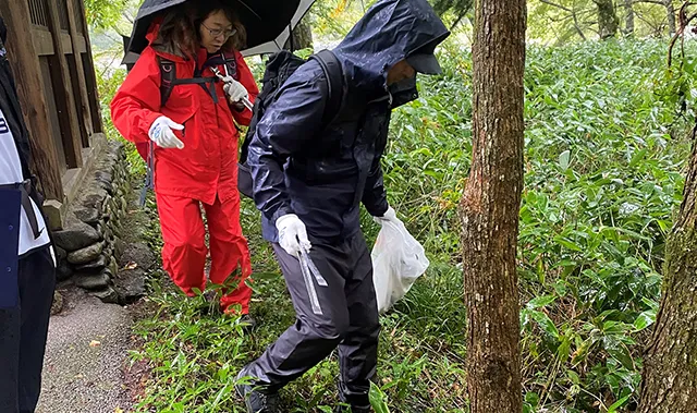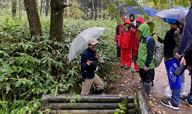 自然公園財団上高地支部によるオリエンテーションで、上高地の成り立ちや自然環境の特徴、野生動物保護の取り組みについて学んだ後、ガイドウォークを通じて上高地の自然を愉しみながら理解を深めました。午後には、自然保護活動の一環として、参加者のみなさまとともにゴミ拾いを実施しました。