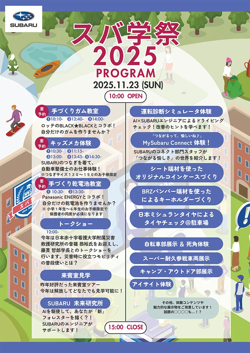 尚、「スバ学祭」にはどなたでもご参加いただけますので、ぜひお気軽にお越しください。当日のコンテンツなど詳細は、以下のサイトにて随時更新いたしますので、ご確認ください。