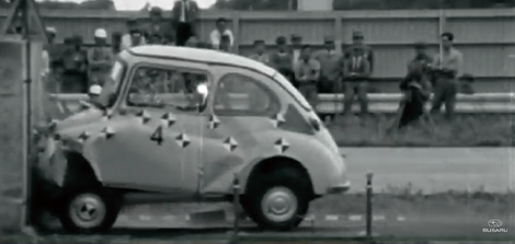 1958年に発売された「SUBARU 360」の時代から、あらゆる方向からの衝突に対して効果的に衝撃を吸収し、高い強度を持つキャビンで乗員を守るべく、衝突安全ボディの開発に取り組んできました。当時はまだ「安全」がクルマの価値として重要視されておらず、衝突安全という概念すら一般的ではありませんでしたが、当社は1965年から自主的に前面衝突試験を開始しました。衝突実験用のダミー人形もありませんでしたが、技術者はクルマのボディ構造や人体への影響について独自に研究を進め、試行錯誤しながら時代の一歩先を行く優れた衝突安全性を追求していました。
