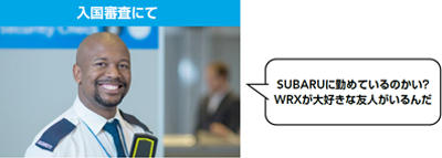 入国審査の際に、SUBARUで働いているということが分かると、「WRXは友達が乗っているが、凄いクルマだ!」「今度フルモデルチェンジするのはいつなんだ」など、クルマのことを尋ねてくる審査官が多く、審査の質問時間が長くなる。