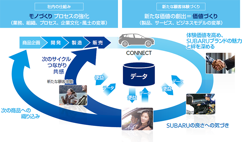 自動車業界を取り巻く急速かつ非連続な変化に対して、従来のSUBARUのスピード感を大きく超えて対応するべく、IT・データを用いて業務をシンプルにする「業務プロセス改革」に取り組んでいます。データの整流化や先進技術の活用による業務の高速・短手番化、また身軽な開発・運用・保守ができる体制づくりや、世の中の優れた技術を活用するFit to Standardにより業務環境を迅速に整備していくことなど、ITで横串を通した全社改革を推進しています。