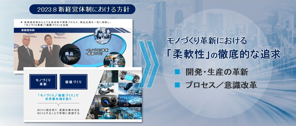 新体制のもと「一旦、バッテリーEVに舵を切る」と宣言したのは、バッテリーEVという未知の領域に挑むことでこそ、モノづくり革新を進め、競争力を高められる、と考えたからであり、これが新体制方針の真の狙いとなります。