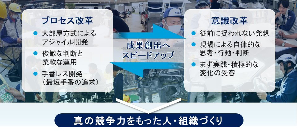 そこで得たスピード、柔軟な発想、そして挑戦する勇気、これをICE車の開発でも繰り返しながら業界トップレベルの革新手番の実現に取り組んでいきます。