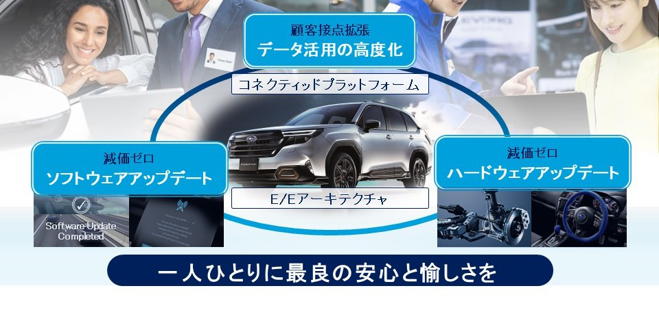 こうして減価ゼロの発想に基づく技術とサービスが一体となった機能拡張を進め、お客様と販売店、そして商品とのつながりが深いSUBARUだからこそできる、お客様「一人ひとりに最良の安心と愉しさ」を提供し続けていきます。