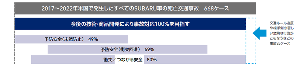 *4:SUBARU乗車中の死亡事故およびSUBARUとの衝突による歩行者・自転車等の死亡事故 全668件。データ出典:FARS