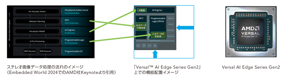 2024年4月にはSUBARU Labで開発をしているAIを搭載する次世代アイサイト向け半導体(SoC:System on Chip)として、AMD社のVersal™ AI Edge Series Gen2を採用し、同社と共に最先端のAI推論性能や超低遅延な演算処理を低コストで実現するため、SoC最適化に向けた回路設計を行う協業を発表11しました。当社はこの協業において、性能・消費電力・コストを最適化するため半導体の回路設計にまでこだわりを持ち、汎用版のSoCに含まれる当社に不要な回路を外しつつ高速な計算が必要な処理を電子回路として追加するカスタムSoCを開発いたします。