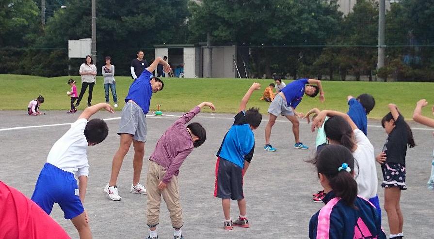 まずは皆でウォーミングアップを行い、体操では小学生らしく全員で元気よく声を出して行いました。