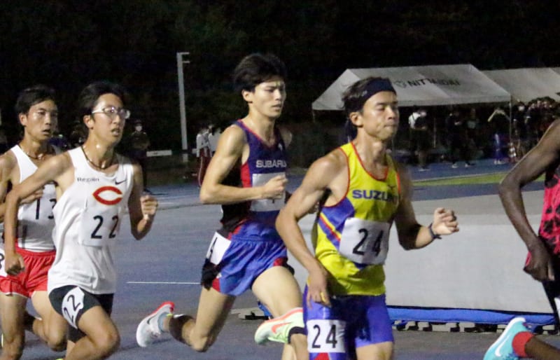 記録会で、懸命に前を追いかける真船選手(左から3人目)