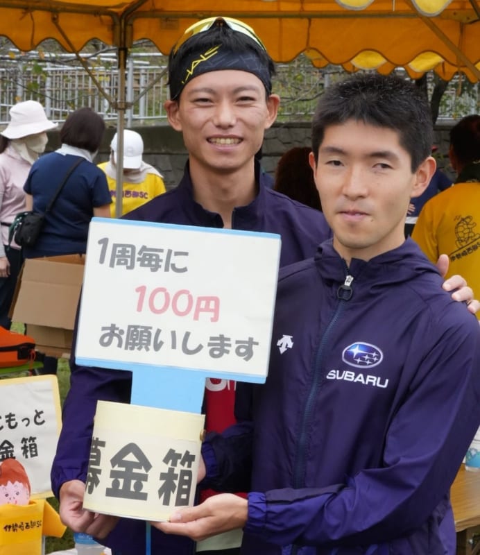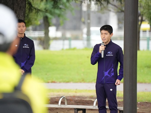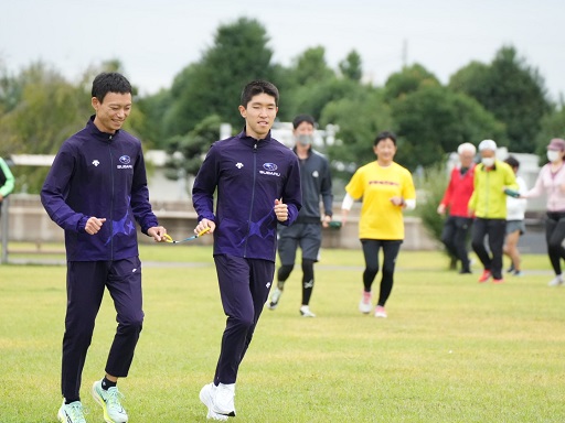 10月10日(月)、伊勢崎市西部公園にてジョギングフェスティバルが開催され、ゲストとして唐澤剣也選手、小林光二コーチ兼マネージャーが参加しました。