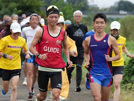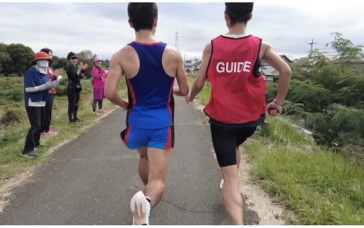唐澤選手と伴走体験、「難しい」と言いながらも楽しそうに行っていました