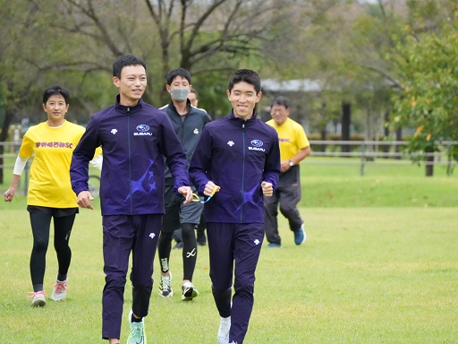 10月10日(月)、伊勢崎市西部公園にてジョギングフェスティバルが開催され、ゲストとして唐澤剣也選手、小林光二コーチ兼マネージャーが参加しました。