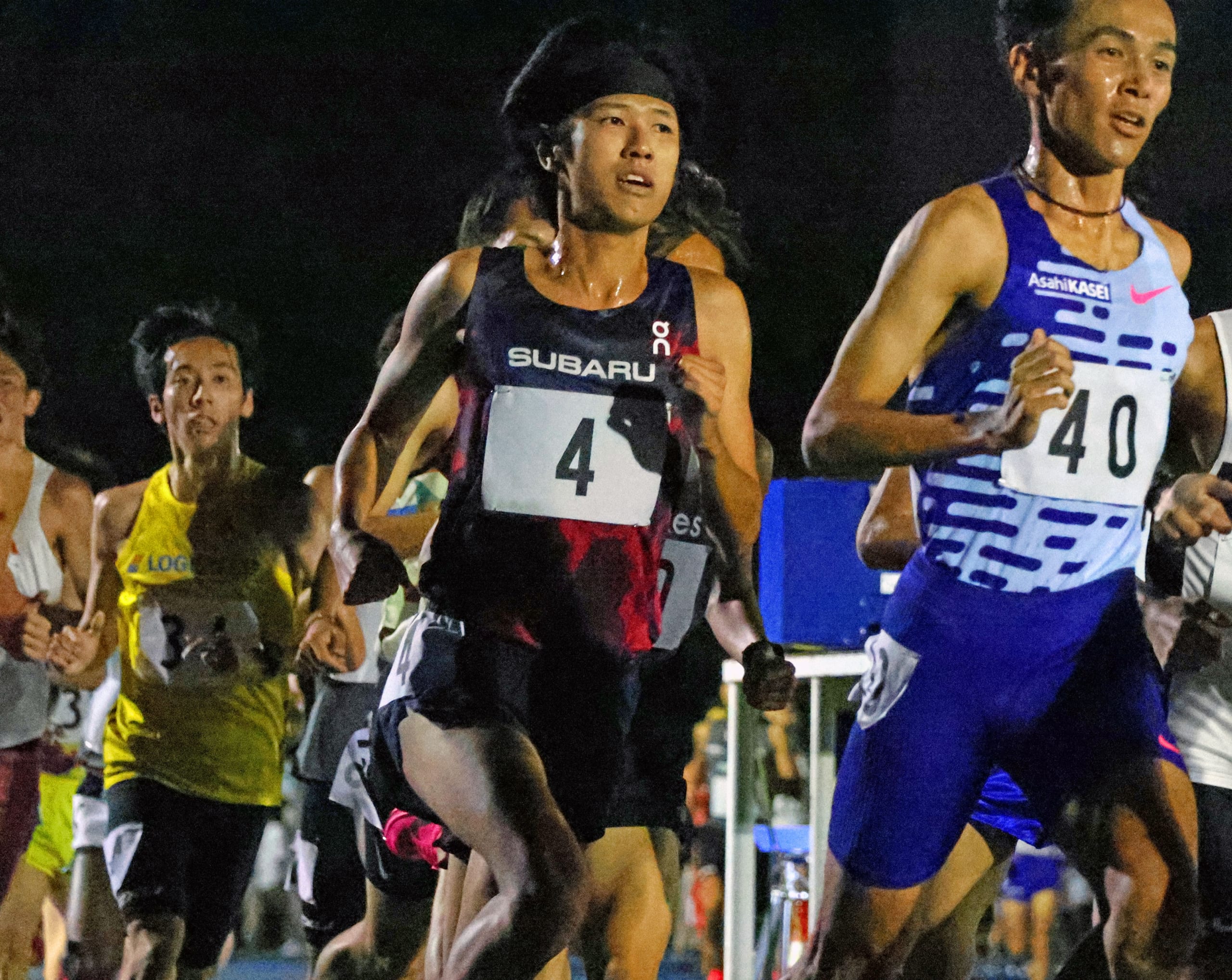 9月の記録会に出場した森田佳祐選手(ナンバーカード4)。前を走る10000m日本記録保持者の相澤晃選手(ナンバーカード40、旭化成)を追う