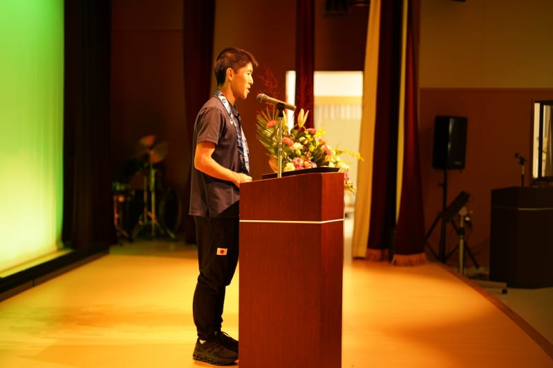 講演の内容としては、競技を始めたきっかけや、練習環境について、また、ガイドランナーなどのサポート体制について、そして、パリパラリンピックに向けての意気込みなどをお話させていただきました。
