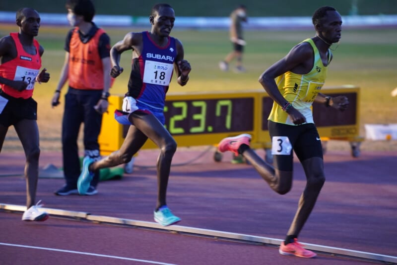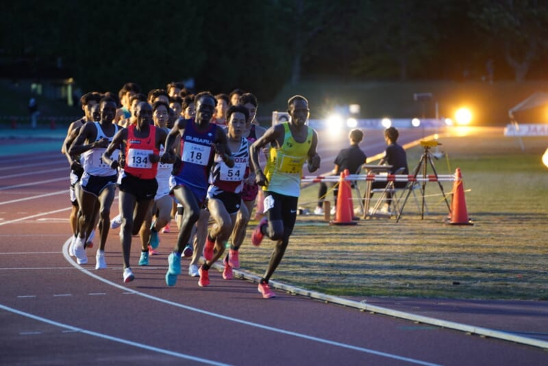 ペースメーカーが先導する中、5000m通過が13分58秒。その後も終盤まで大きな揺さぶりなく安定したペースで推移しました。ラスト600mでタイタス選手がペースを上げたところで反応しましたが、力負けし2着でのフィニッシュとなりました。