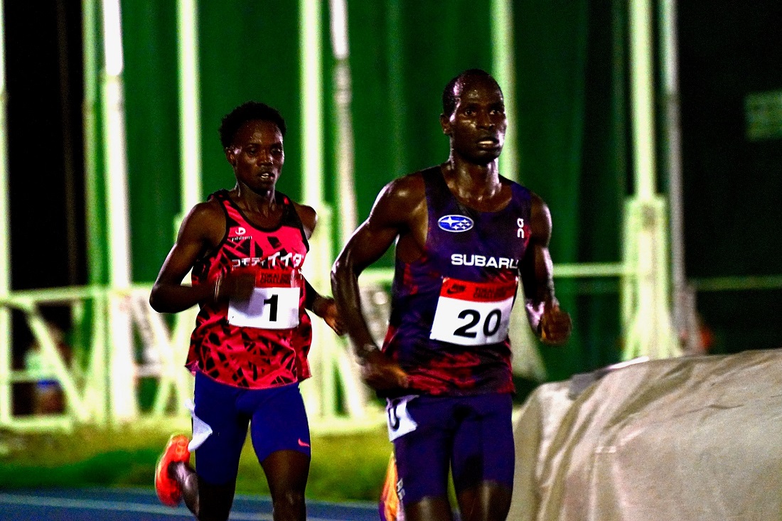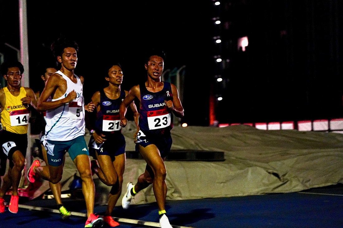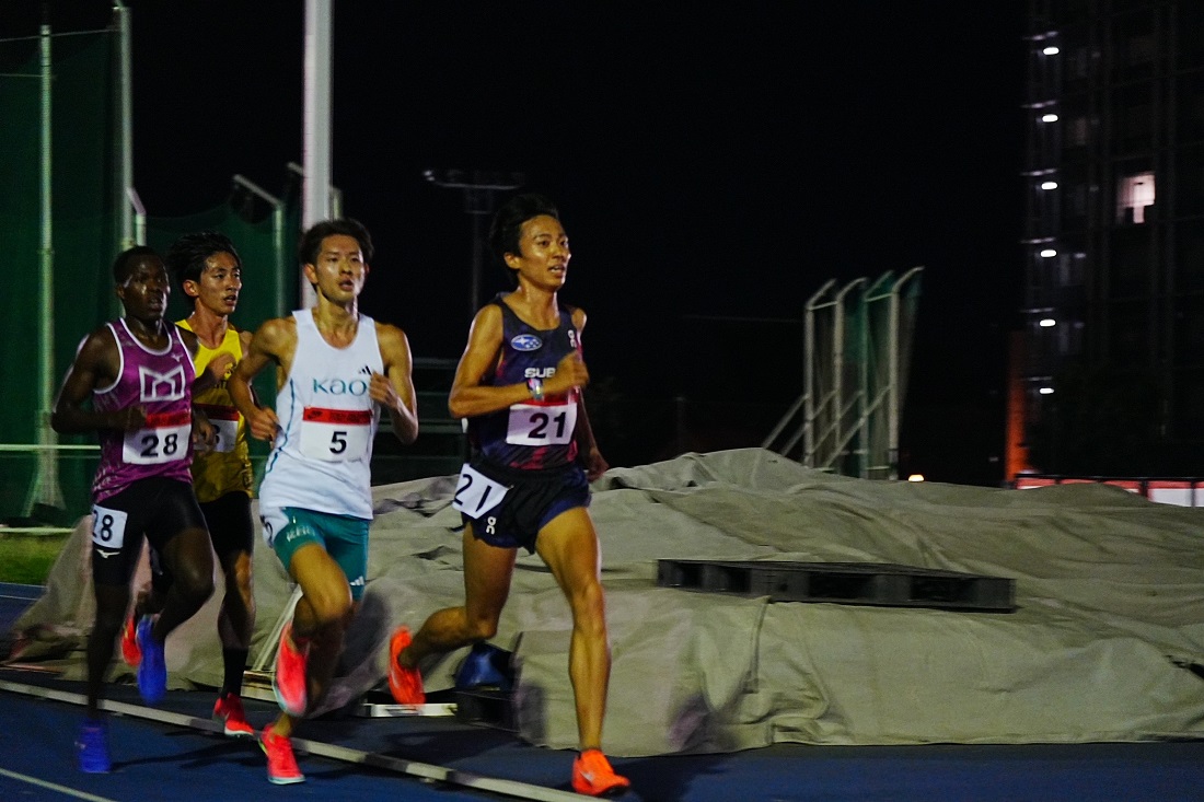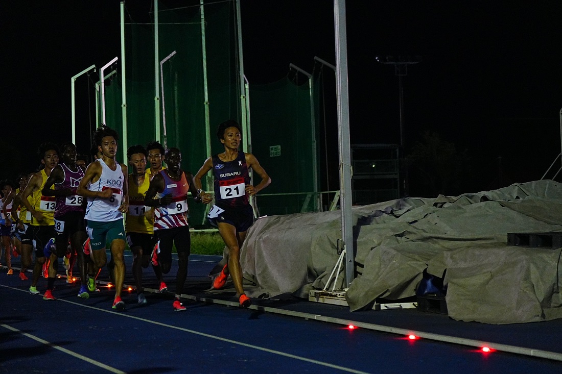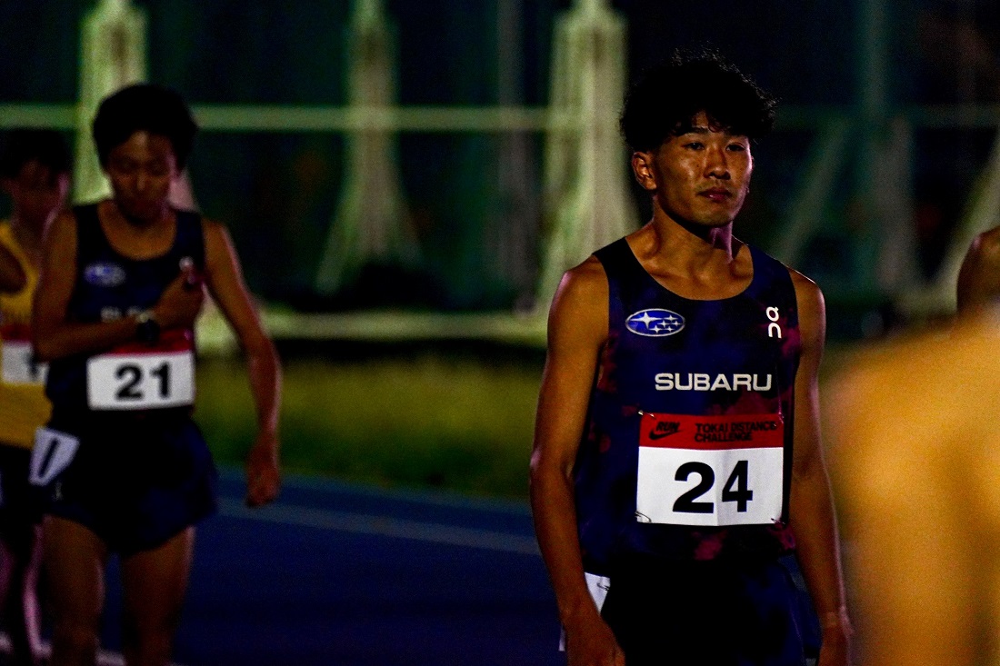 東海大長距離競技会の5000mに5名の選手が出場しました。9月も終わるという時期ですが蒸し暑さが残る中、各々が目的を持ってスタートしました。 エマニエル選手はSUBARU入社後初のレースとなります。序盤からレースをつくり、最後までしっかり動かすことが出来ました。タイムはまだまだですが、これから記録も伸ばしてくれることに期待しています。 鈴木、小林選手はペースを決めてレースを自らつくりました。終盤は蒸し暑さが影響したためか思った以上に伸びませんでしたが、おおむね意図通りのレースが出来ました。砂田選手は久しぶりの5000mでしたが流れに乗って自己記録を更新。この夏、順調に練習を継続できた成果が出たのではないかと感じます。梶谷選手は中盤のところで動きが崩れ、途中棄権となりました。練習は出来ているので駅伝に向け状態を上げていってもらいたいと思います。 ご声援ありがとうございました。