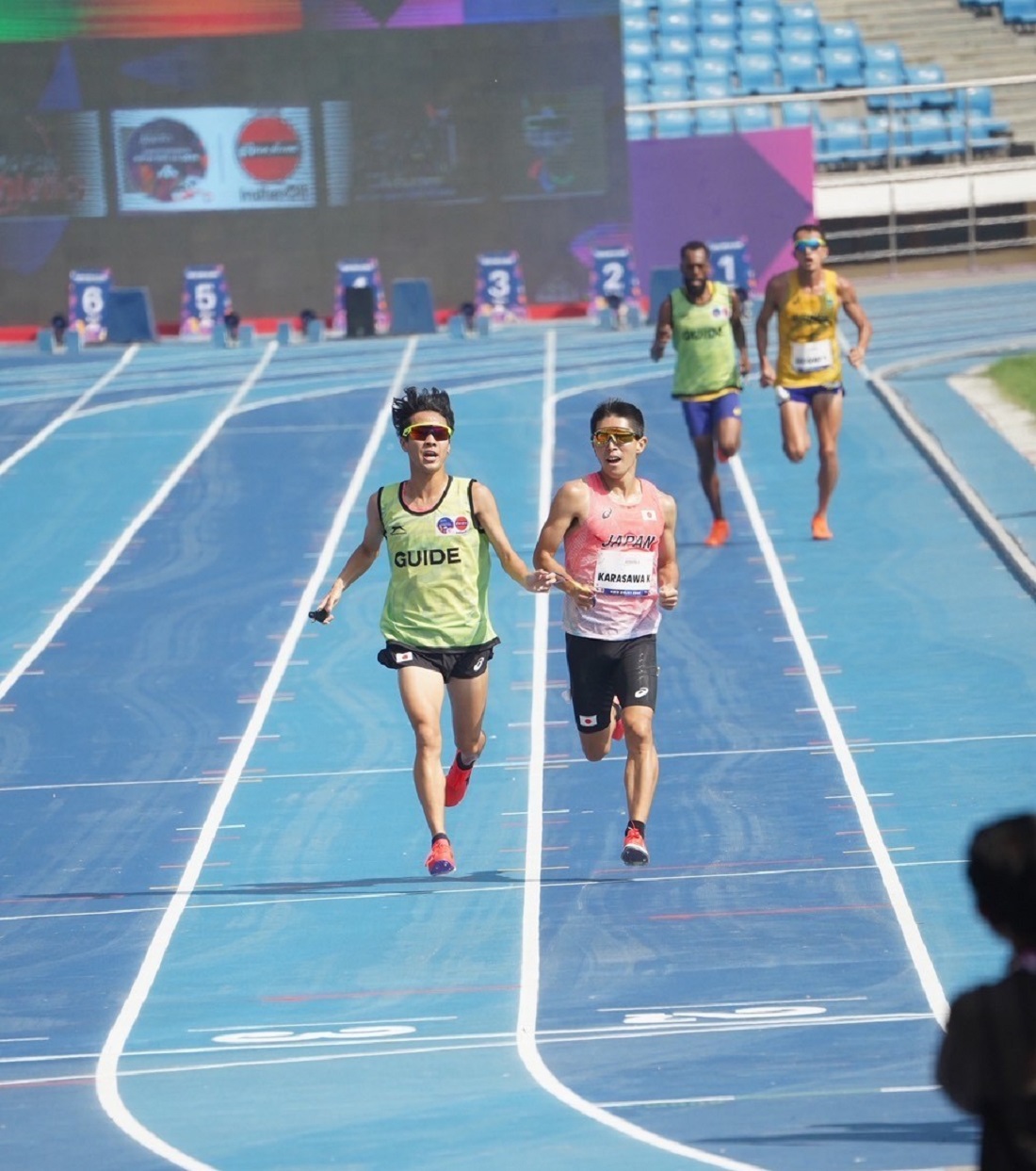 2025年9月26日からニューデリー2025世界パラ陸上競技選手権大会が開催され、SUBARU陸上競技部から唐澤選手とガイドランナーとして堀越選手が5000mT11、1500mT11に出場しました。5000mT11ではガイドランナーの清水琢馬さん・堀越選手とともに厳しい気候条件の中、中盤からペースを上げトップに立つとそのままゴールし、2大会ぶりの金メダルを獲得しました。