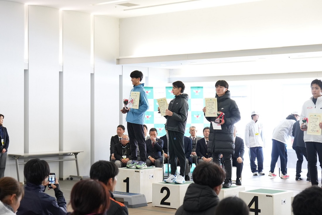 10Kmの部に出場した石田は、スタートから単独で逃げて勝ち切りました。終盤は風もあり記録は伸びませんでしたが、無事に入社後初レースで勝つことができ、これからの活躍に期待が高まりました。