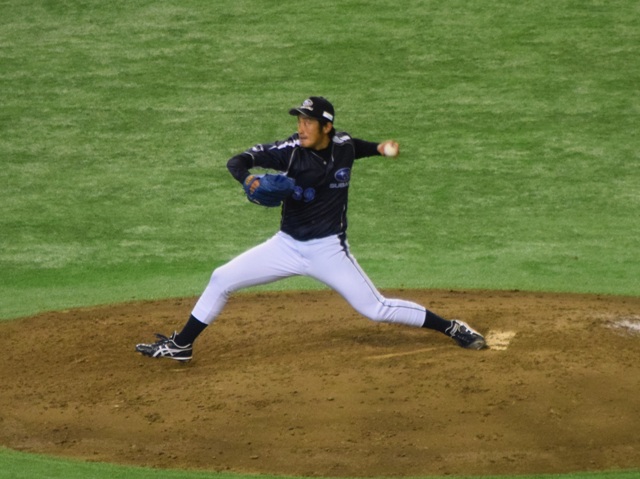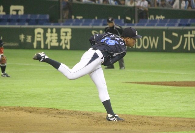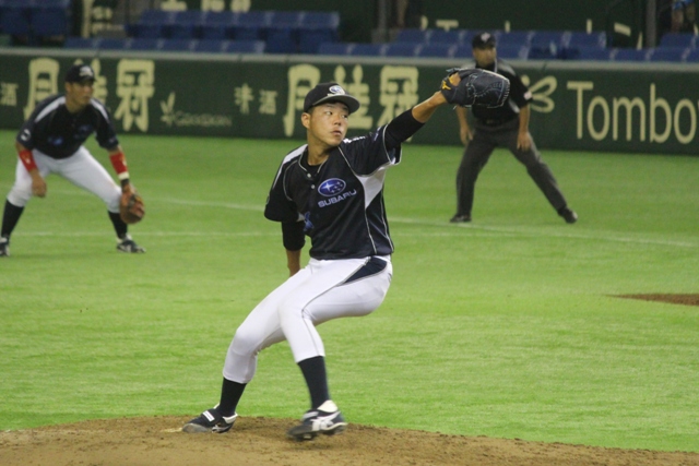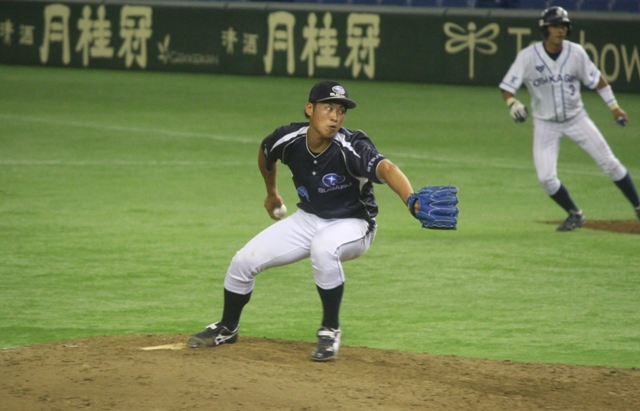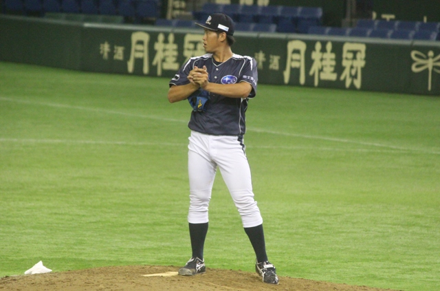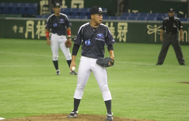 6回裏2アウトから登板した能間(補強選手 新日鐵住金鹿島) 1回1/3 自責点0