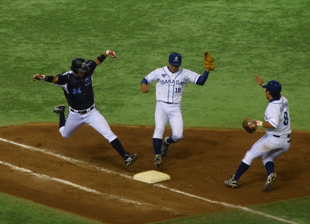 1番日置 ショートゴロ 唐谷3塁へ進塁 2アウト3塁