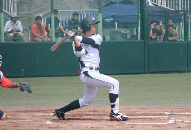 6番 岩元聡 センター前ヒット 2アウト 1塁