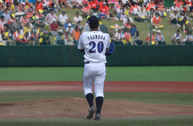 ピッチャー 小野に代わり、角田