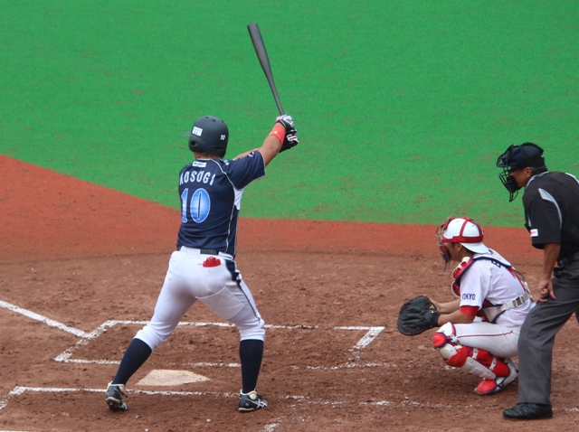 7番 小杉 レフトフェンス直撃の2塁打で2点追加 1アウト2、3塁