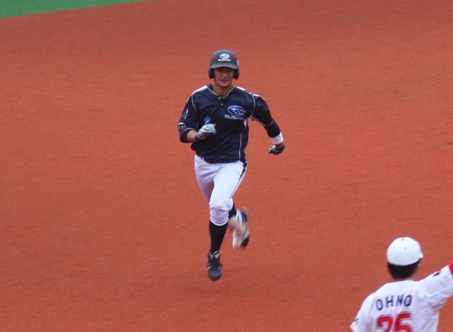 3番 阿部亮 センター前ヒット 1点追加 (センターホームへの送球間で2塁へ) 1アウト2塁