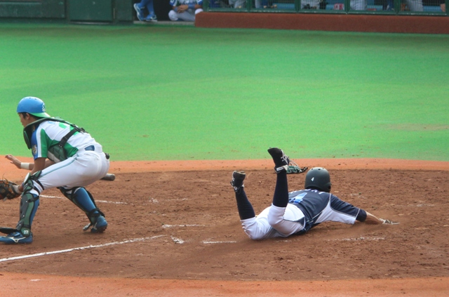 5番 林 (3球目キャッチャーパスボールで竹田2塁へ 1アウト2里) ショートへの内野安打 1アウト1、2塁