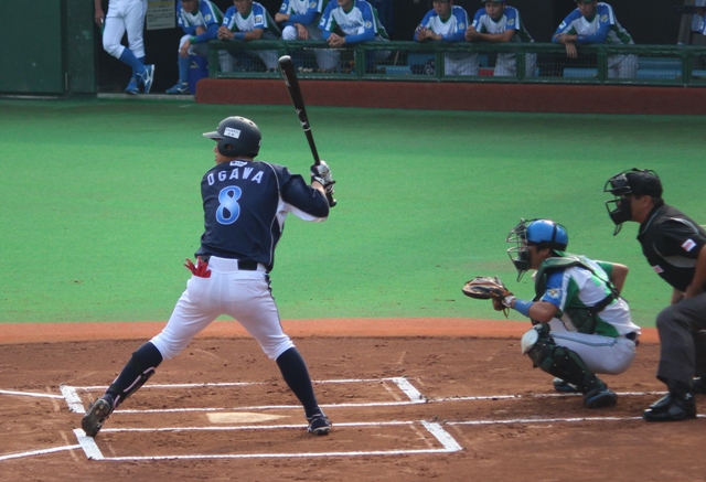 2番 小川 (3球目 日置盗塁を試みるもタッチアウト 2アウト2塁) センター前ヒット 2アウト1塁