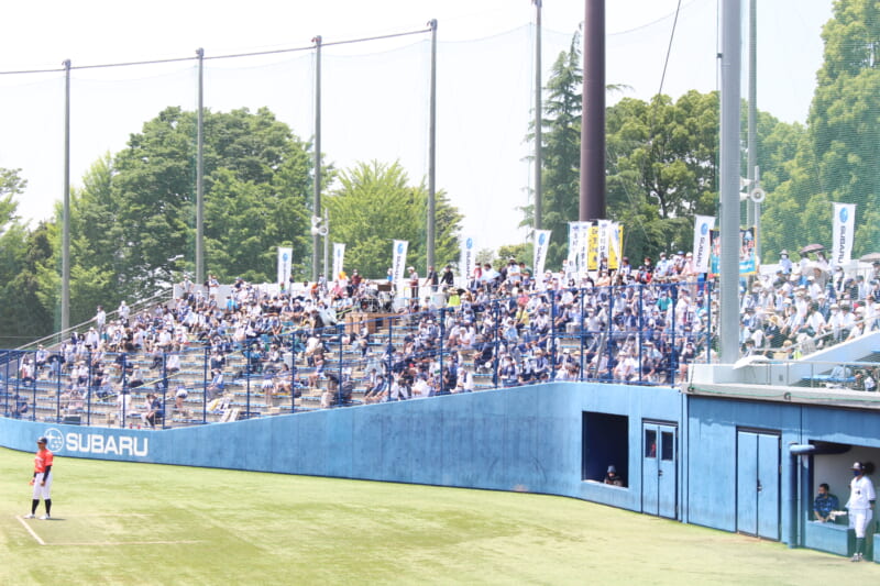 この日の対戦相手は日立製作所。一塁側には1000人近くもの応援団が駆けつけ、SUBARUスタンドが青色に染まりました!