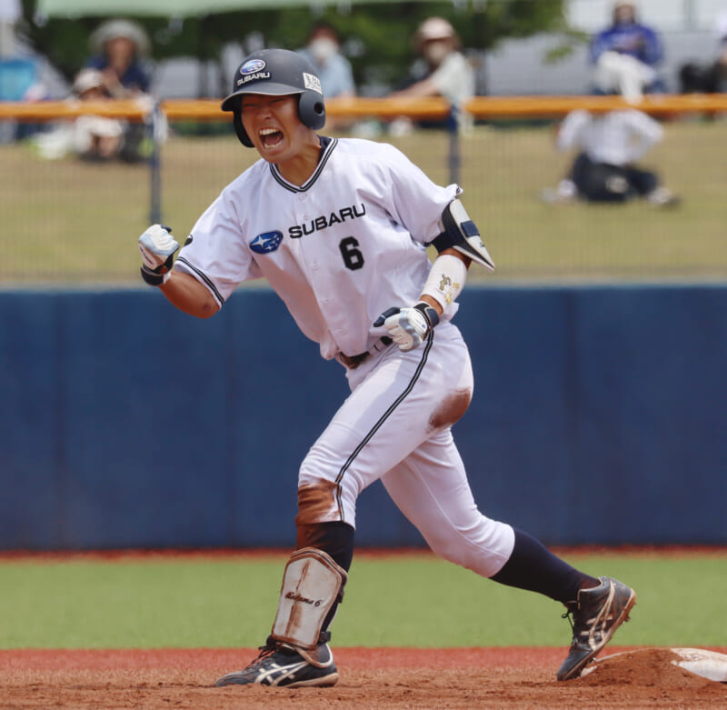 4回、SUBARUは先頭の小玉選手がセンター前ヒットで出塁。日置選手の犠打の後、2番後藤選手が、レフト前へのタイムリー!