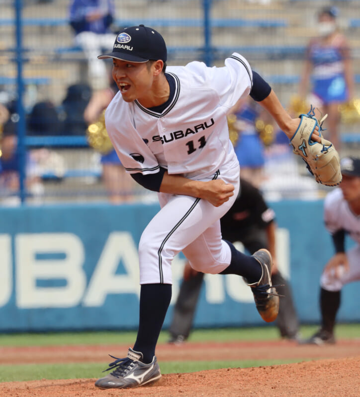 しかし4回裏、日本製鉄鹿島が4連打と犠牲フライと合わせて3点を挙げて4-7と差を広げられます。ここでSUBARUは投手交代、阿部投手に代わって、川上雄太朗投手(背番号11)がリリーフ。