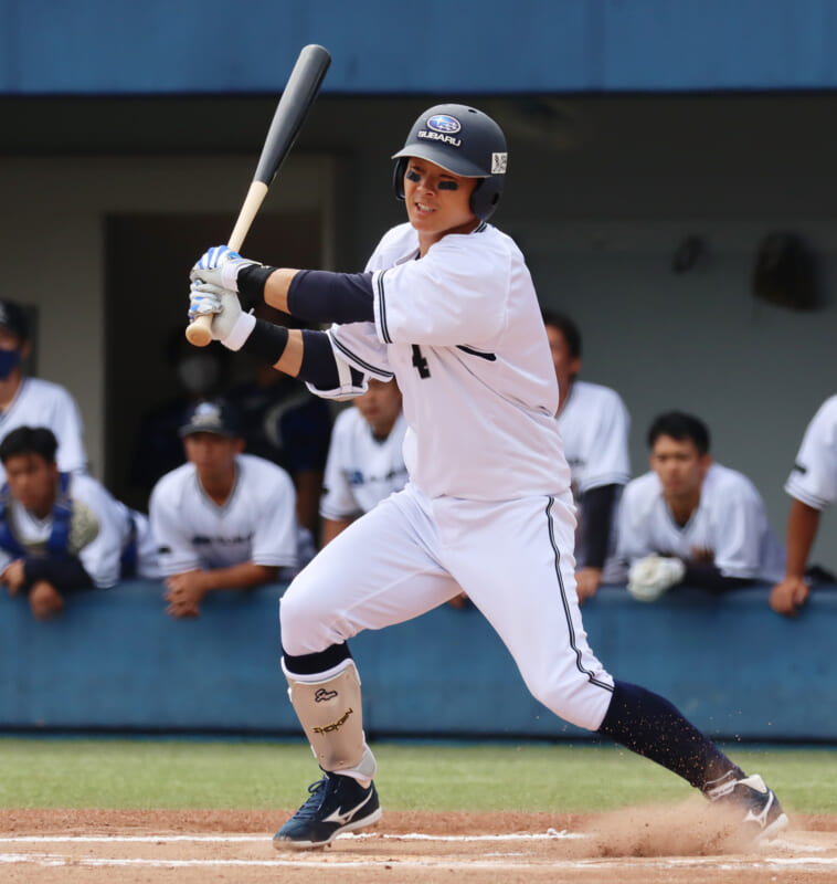 追うSUBARUは6回、1番の日置翔兼選手(背番号4)がヒット!