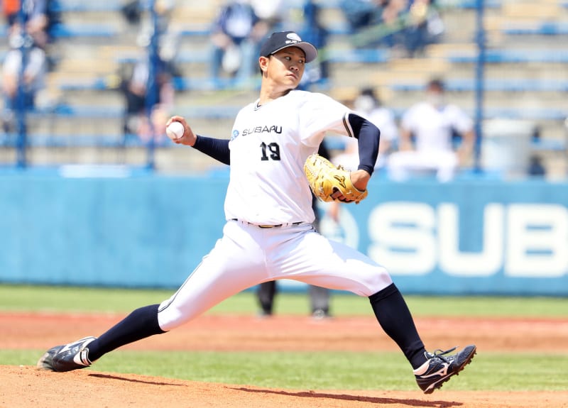 SUBARU先発は手塚周投手⑲、三菱重工Eastは大野亨輔投手と両チームともエースが登場です。