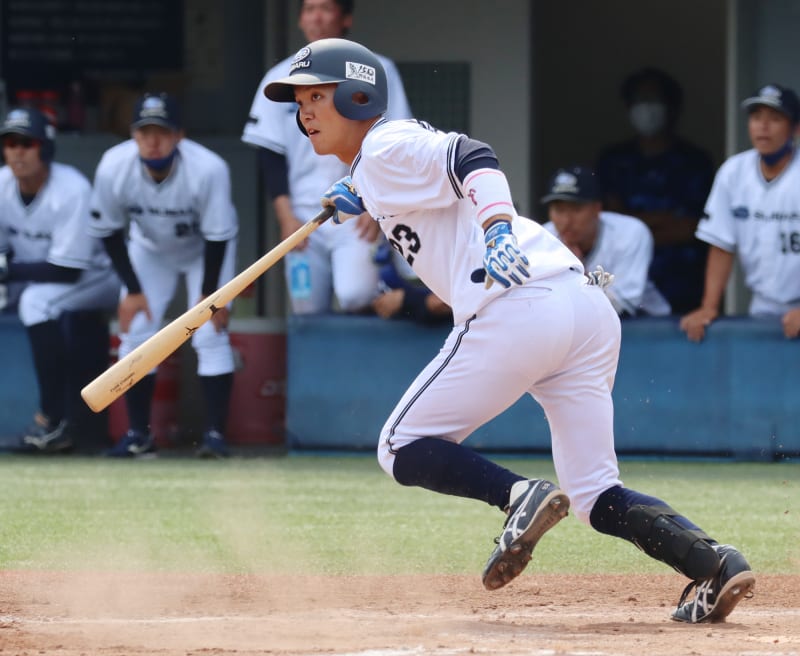 1点を追うSUBARUは7回、三菱重工Eastの2番手投手の立ち上がりを攻め、1死1、2塁のチャンスを作ると、好調の1番・中里亮太選手㉓がセンターへタイムリーを放って同点に。