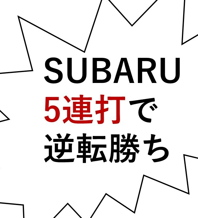 | SUBARU | 0 | 1 | 0 | 3 | 0 | 0 | 2 | 0 | × | 6 |